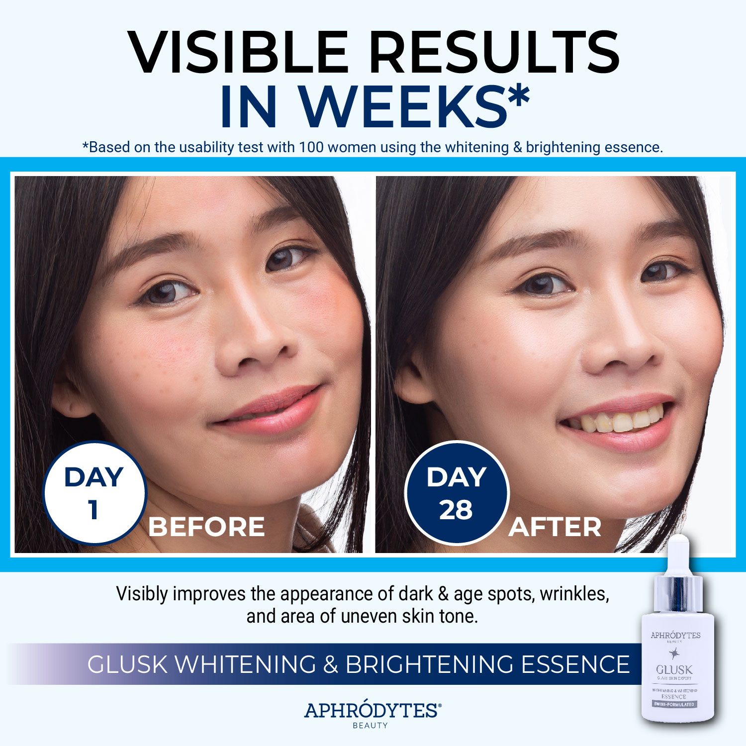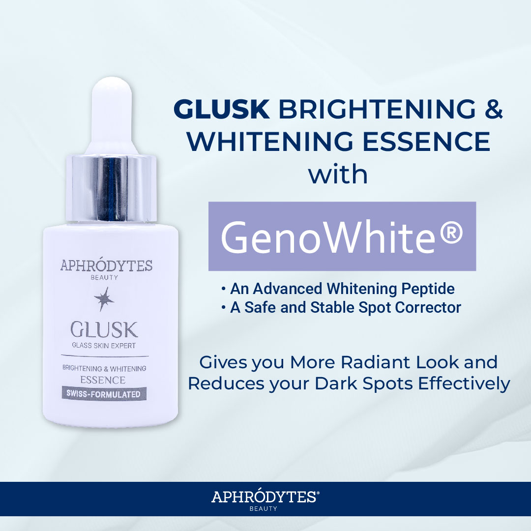 Formulated with scientifically advanced ingredients, GLUSK Brightening & Whitening Essence combines the power of targeted peptides, natural extracts, and skin-replenishing hydrators to deliver noticeable results. Each component is carefully selected for its efficacy in reducing dark spots, evening skin tone, and enhancing luminosity. Backed by rigorous research, this essence addresses pigmentation and dullness at a cellular level, helping you achieve a brighter, more radiant complexion with consistent use. Experience the glow of skin science with GLUSK’s expertly crafted essence.
