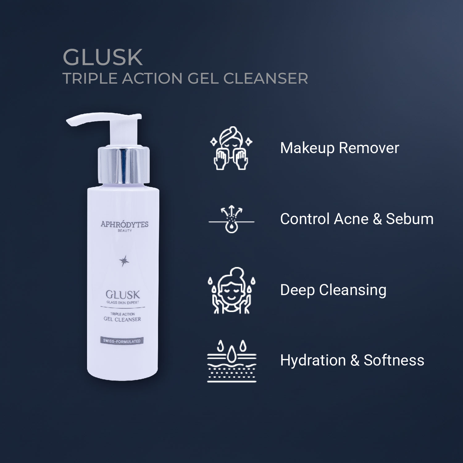 GLUSK Triple Action Gel Cleanser with Makeup Removal